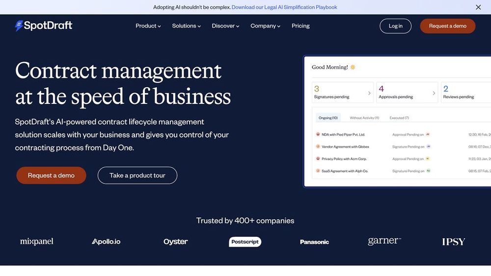 SpotDraft is a contract lifecycle management (CLM) platform designed for fast-growing companies that need to streamline their contracting operations. The platform consolidates the entire contract journey—from initial drafting and negotiation through execution and obligation tracking—into a unified workspace. By combining intelligent automation, collaborative workflows, and actionable analytics, SpotDraft eliminates fragmented contract processes that typically involve scattered email chains, multiple document versions, and disconnected approval systems. The platform serves over 400 enterprise customers and integrates seamlessly with widely-used business tools including Microsoft Word, Slack, and major CRM and ERP systems. SpotDraft's architecture prioritizes data security and privacy, with enterprise-grade encryption, GDPR compliance, and on-device intelligence capabilities that keep sensitive contract data protected throughout the lifecycle.